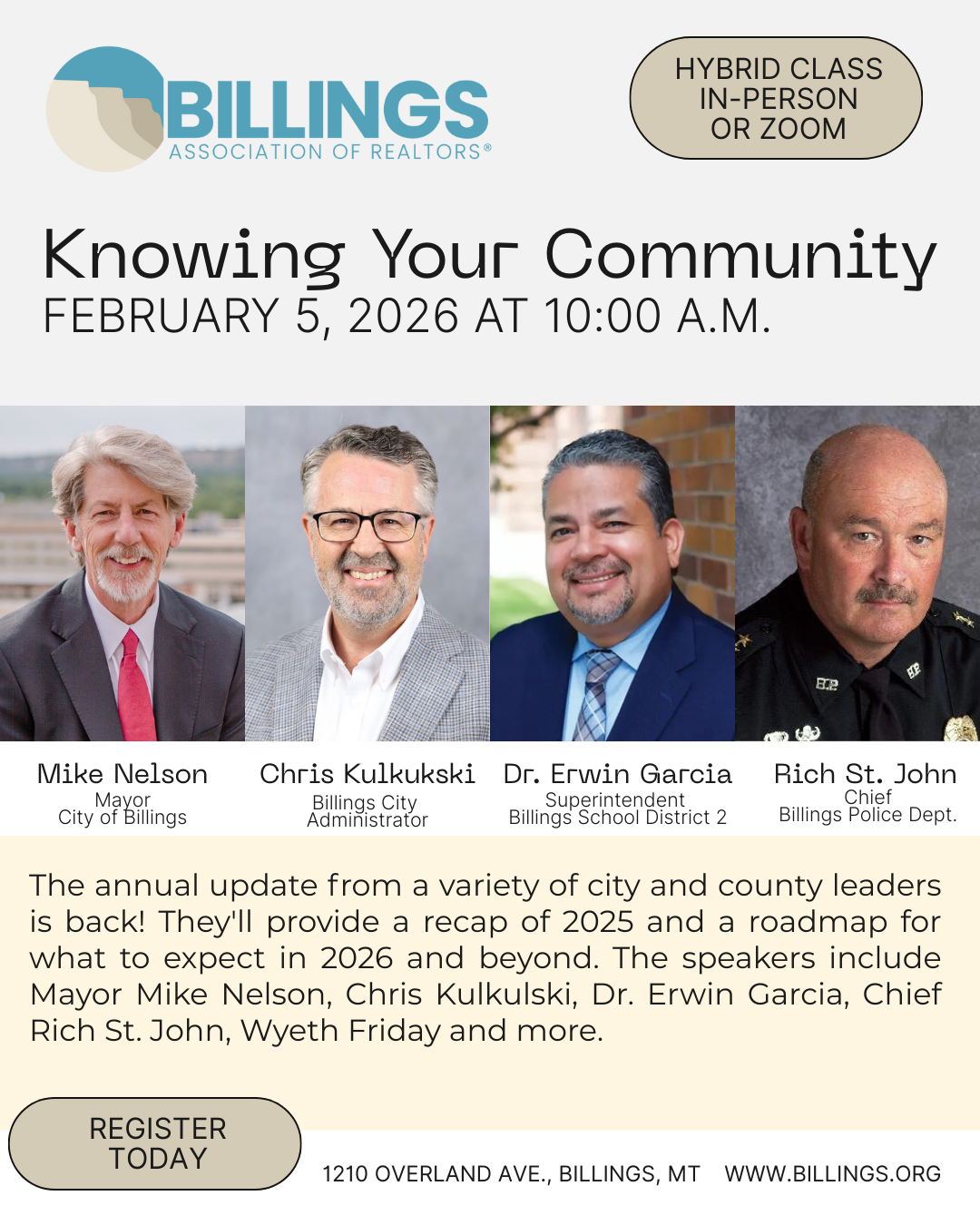 Knowing Your Community is Sponsored by First Montana Title and Evergreen Home Loans. Thank you both for supporting Education through BAR! Powered by our Sponsors. Elevated by their support.