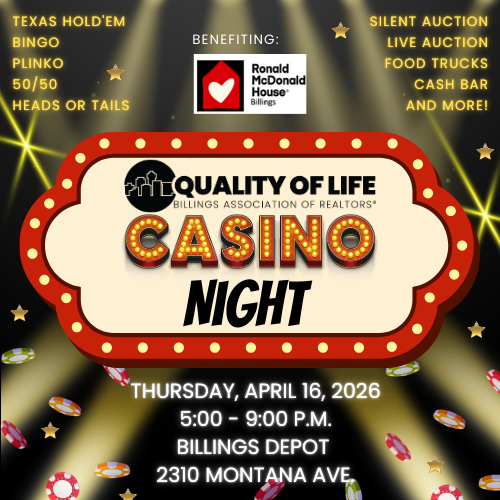 Join us for the Quality of Life Casino Night, benefitting the Ronald McDonald House of Billings. Funds will be used to supply and support the RMH Family Room at St. Vincent Regional Hospital's NICU Department. We will have Texas Hold 'Em, BINGO, PLINKO, Huge Silent Auction, Live Auction and so much more!! Cash Bar will be available and Food Trucks will be parked outside!